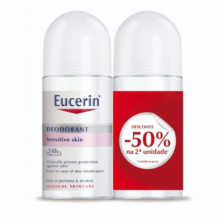 Eucerin Duo Desodorizante pele sensível 24h Roll on 2 x 50 ml c/ Desconto de 50% na 2ª Embalagem