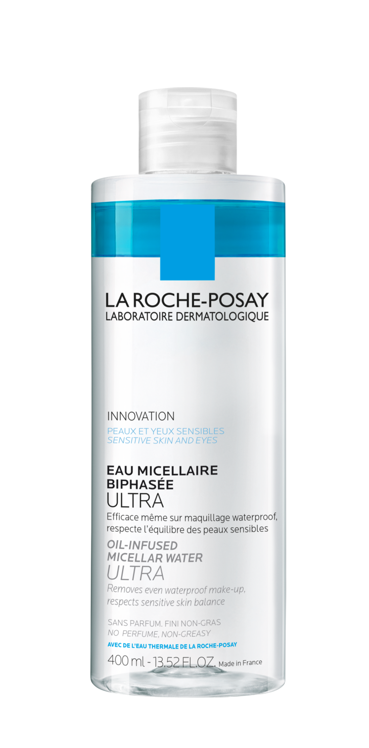 La Roche-Posay Água Micelar Ultra Bifásica remove a maquilhagem à prova de água, deixando a pele limpa e suave.